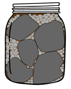 A familiar image for time management encourages us to organize our lives the same way we would pack rocks, small stones and sand into a jar: the big rocks (our most important commitments) go in first and occupy most of the cherished space in our cramped schedules; smaller stones (significant but of less urgency or importance) go in around them; finally, there is the sand of our lives, stuff we all have to do that plays a role but which we must, when time is short, simply allow to wait.